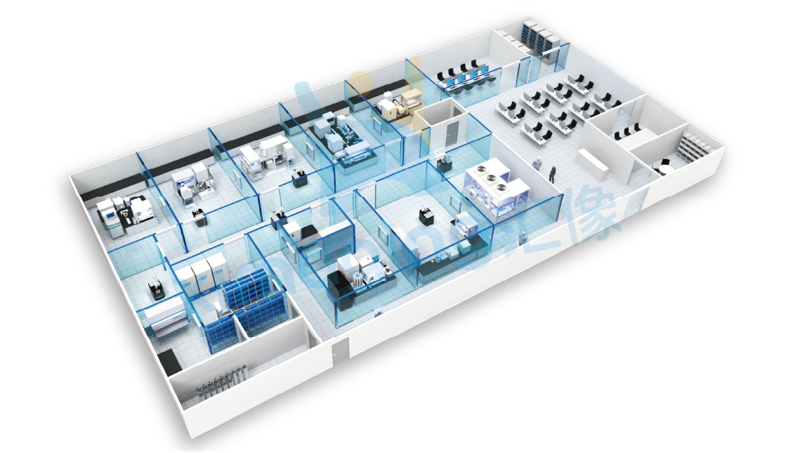 該自動化實驗室1000多平,以匯像科技云端中控引擎系統為核心,實現了8個自動化功能島,100+儀器設備的實驗室自動化,可以實現血液、組織、唾液等樣品的前處理、細胞的傳代培養、化合物高通量篩選、細胞的染色成像、NGS建庫和測序等實驗流程;最大限度地降低樣品處理錯誤的風險,提高實驗的一致性和可靠性,從而實現更高效的研發進程。